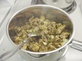l'oignon, ajouter 2 feuilles, les amandes pulvérisées,