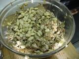 en parts. Mettre les morceaux de poulet dans le saladier,