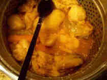 en grands morceaux et prealabelement salée et poivrée) dans