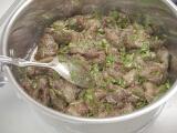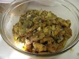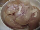 en parts. Mettre les morceaux de poulet dans le saladier,