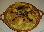 les légumes, les viandes et les raisins secs. Présenter