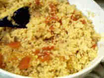 temps en temps, il faut asperger le couscous d'eau et le melanger.