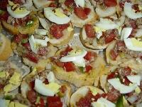 ensuite les olives coupes, le thon, le capre et le fromage.